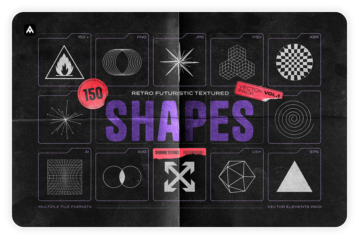 150 RETRO-FUTURISTIC TEXTURED SHAPES PACK