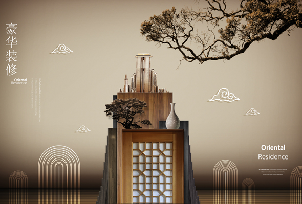 20款传统中国水墨风山水古典东方元素主视觉海报模版