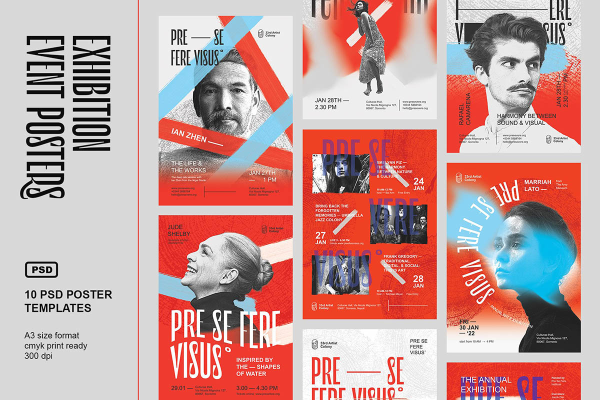 20款潮流抽象创意扭曲故障风视觉海报设计ps样机素材图片特效模板