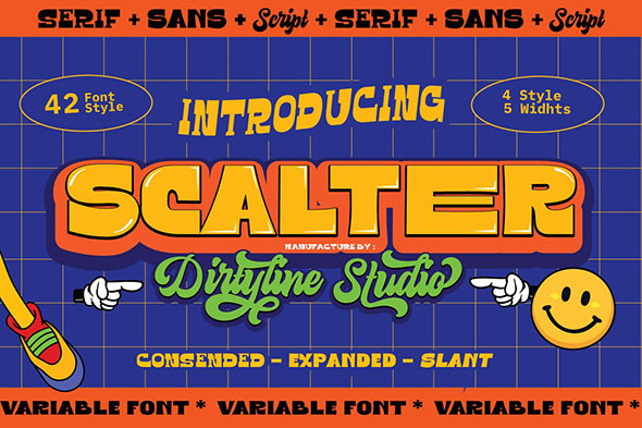 30款复古80年代音乐艺术幽默滑稽风趣儿童卡通英文字体mac下载