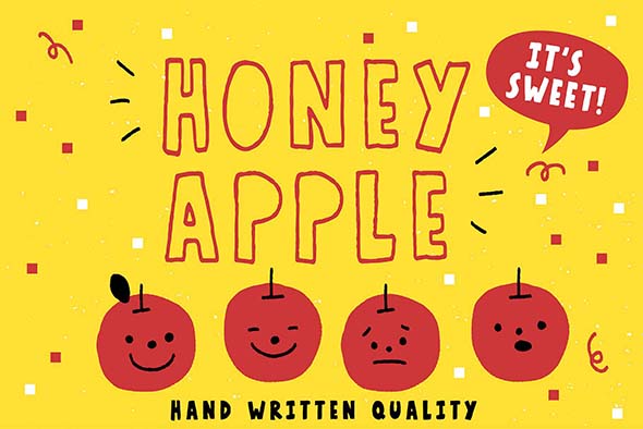 Honey Apple 可爱呆萌儿童卡通手写英文字体logo品牌标识排版字体