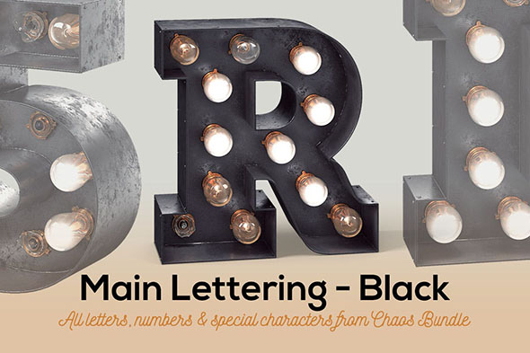 复古黑色钢铁英文字体跑马灯灯光效果场景设计素材PNG格式