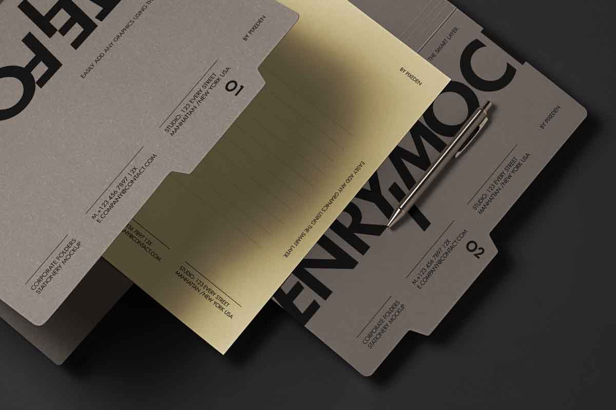 Corporate Stationery Psd Folder Mockup Set