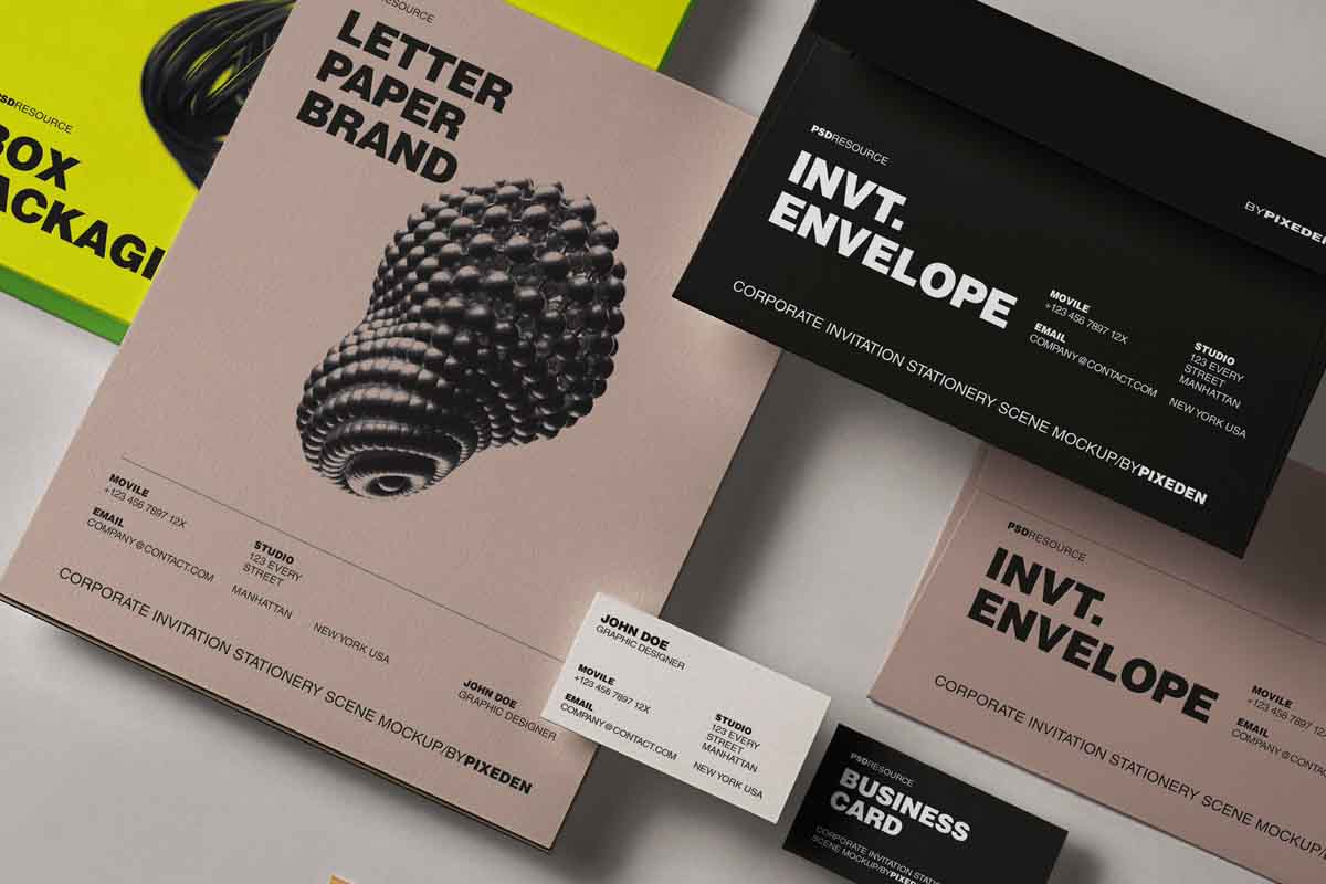 Corporate Psd Invitation Stationery Scene Mockup