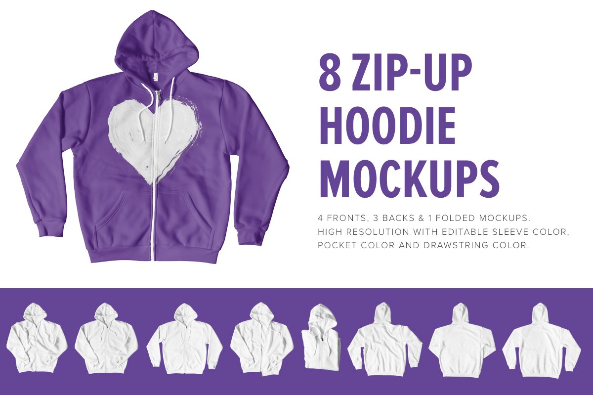 8 Premium Zip-Up Hoodie Mockups