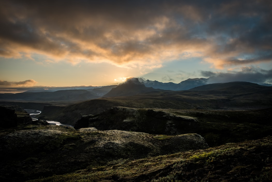 乌云密布下的黑色山脉