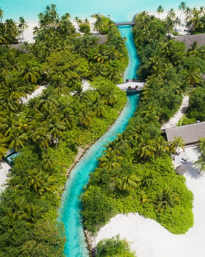 绿色森林中的水流景观