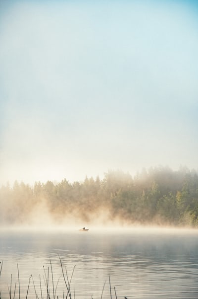 烟雾缭绕中的森林景观