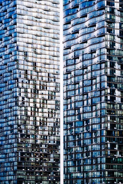 蓝白色透明玻璃建筑大厦