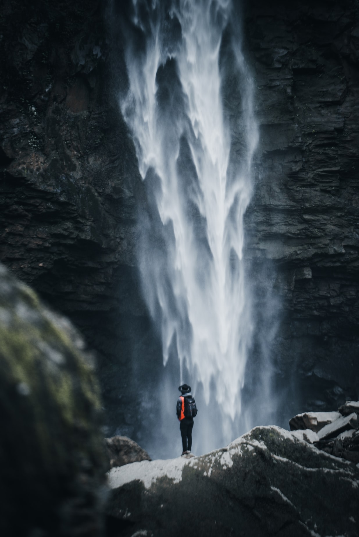 瀑布旅行下的冒险者