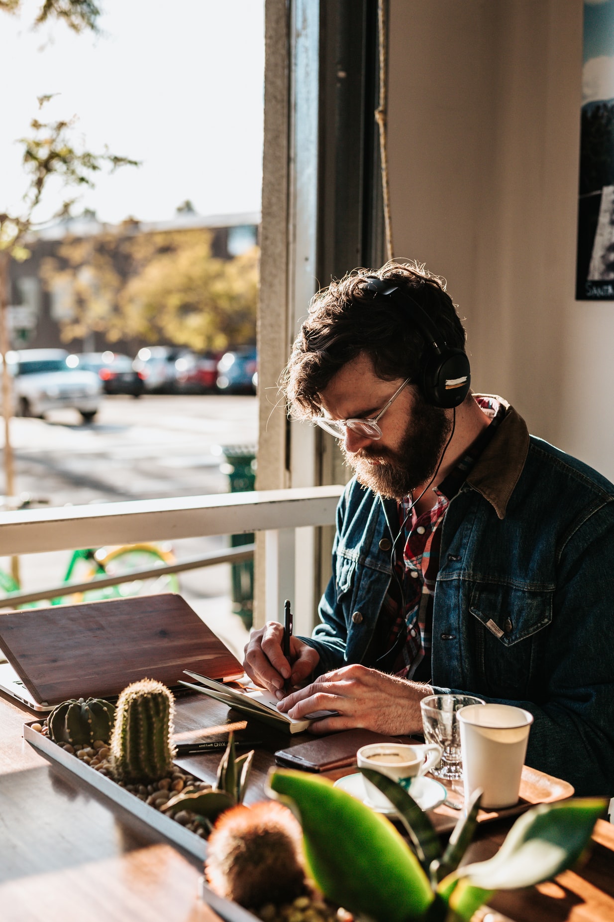 绿色盆栽植物与笔记本电脑组合