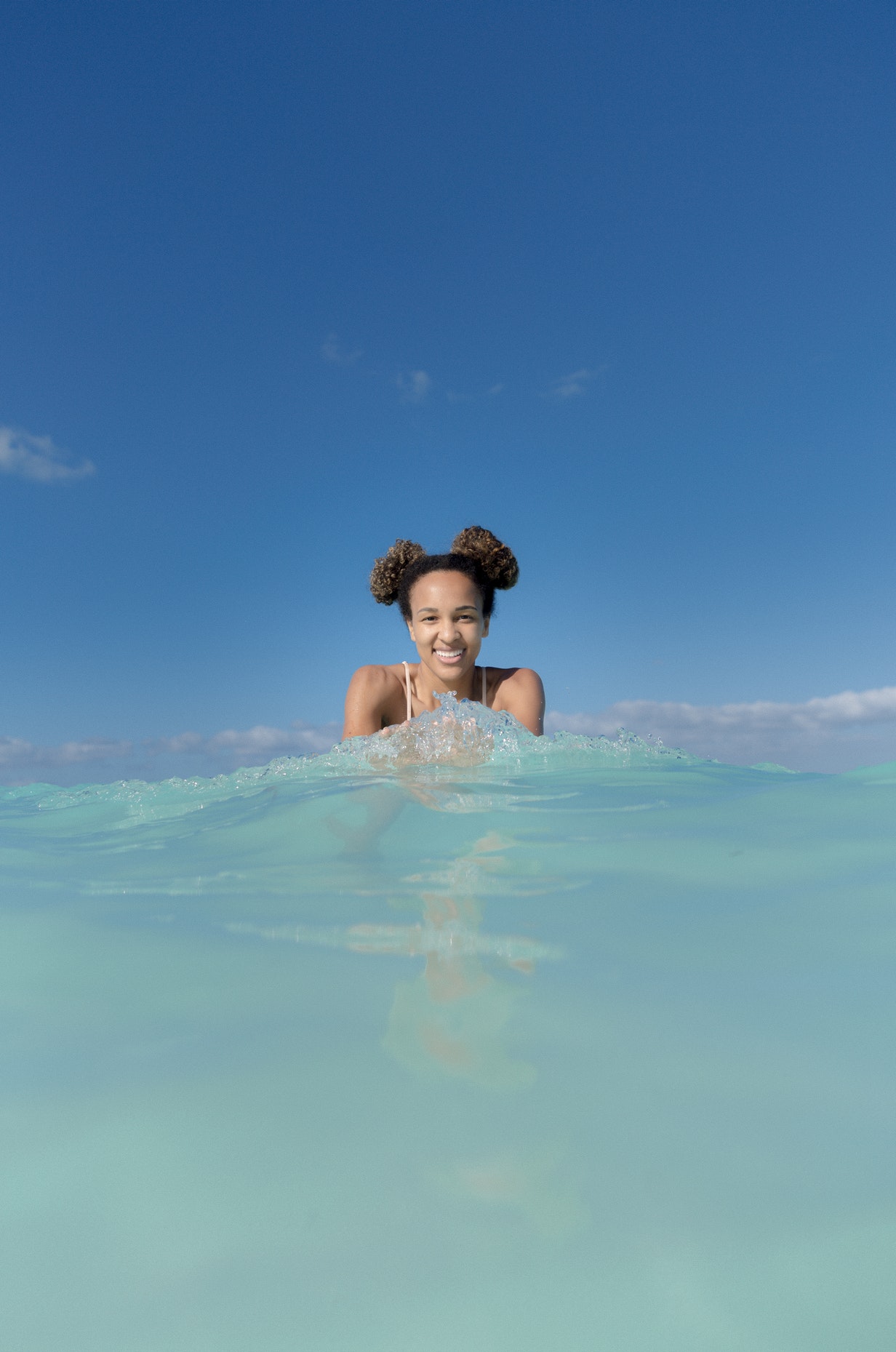 海洋中的双卷发女孩旅行照片