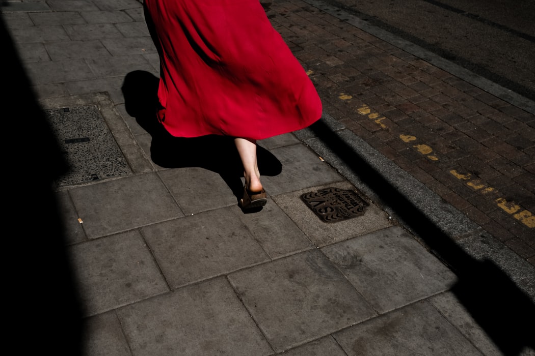 街头公路上的红色裙子