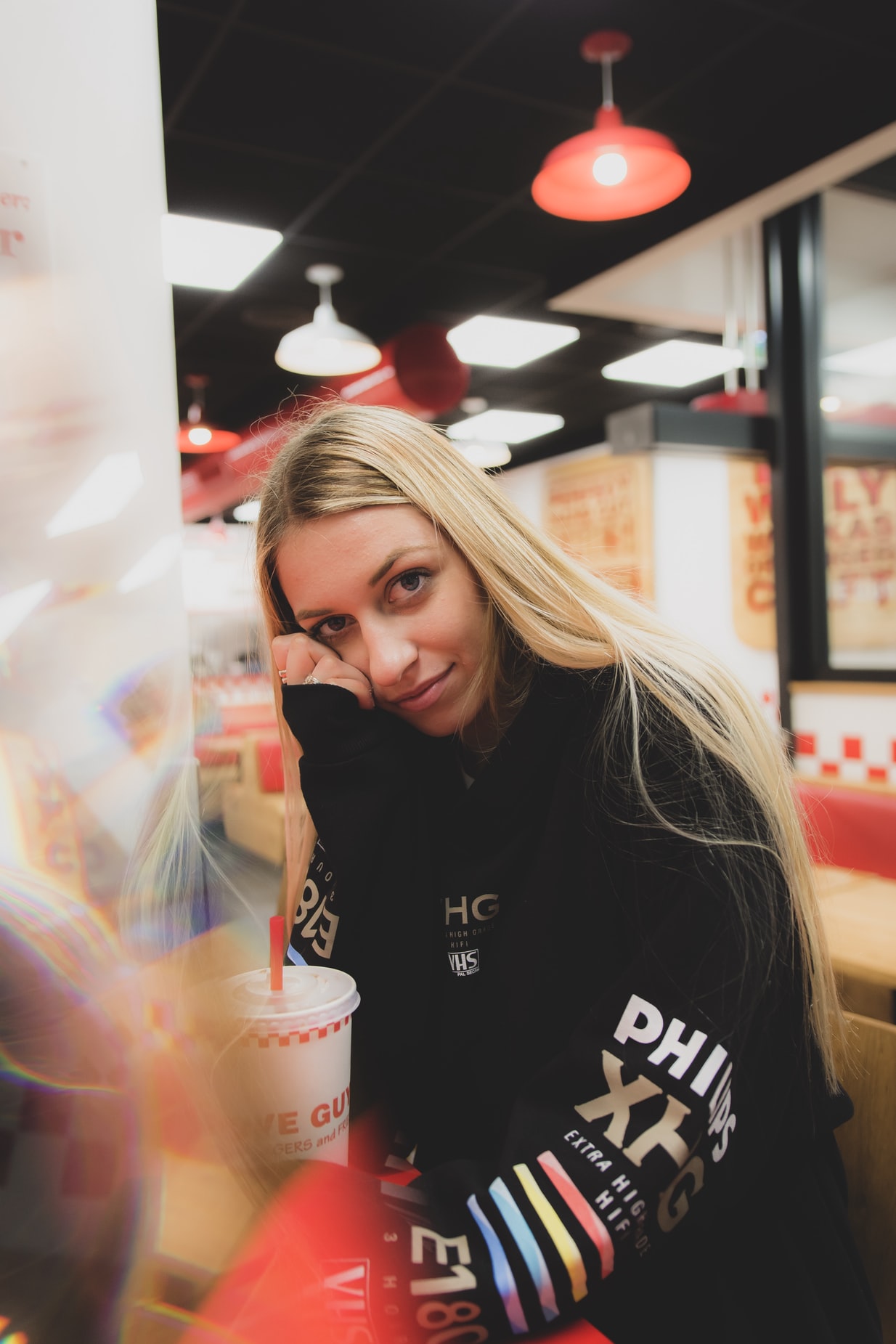 便利店里的金发女性摄影展示