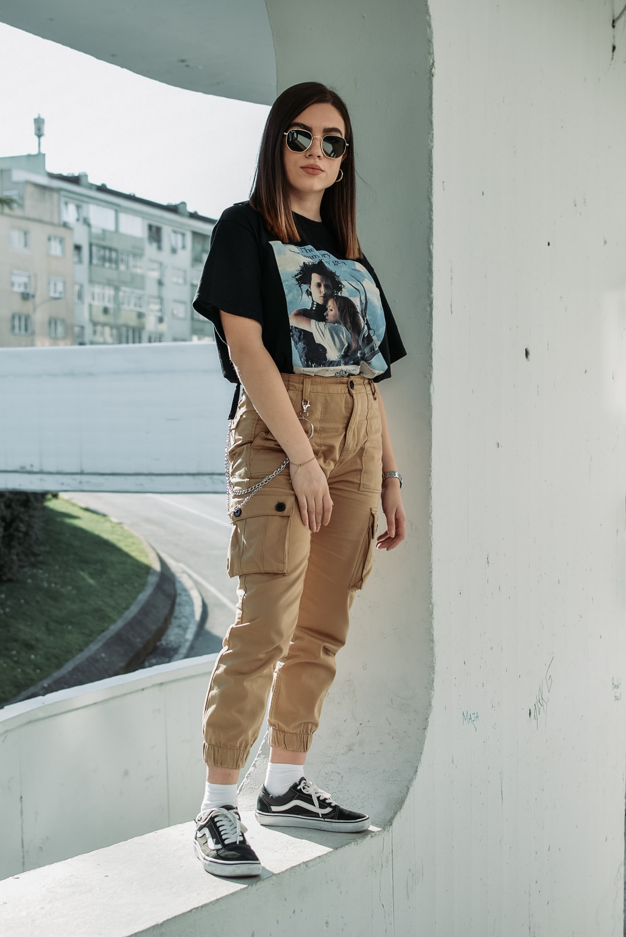 缤纷街头上的时尚牛仔女性