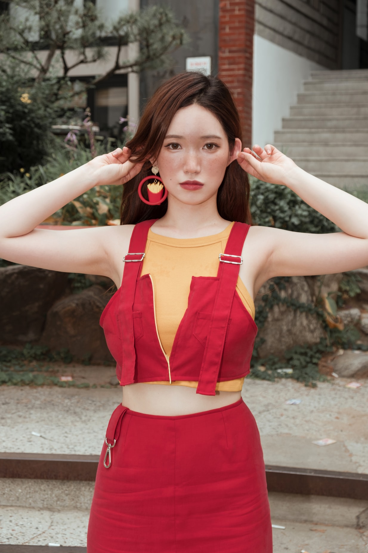 庭院红色连衣裙时尚摄影
