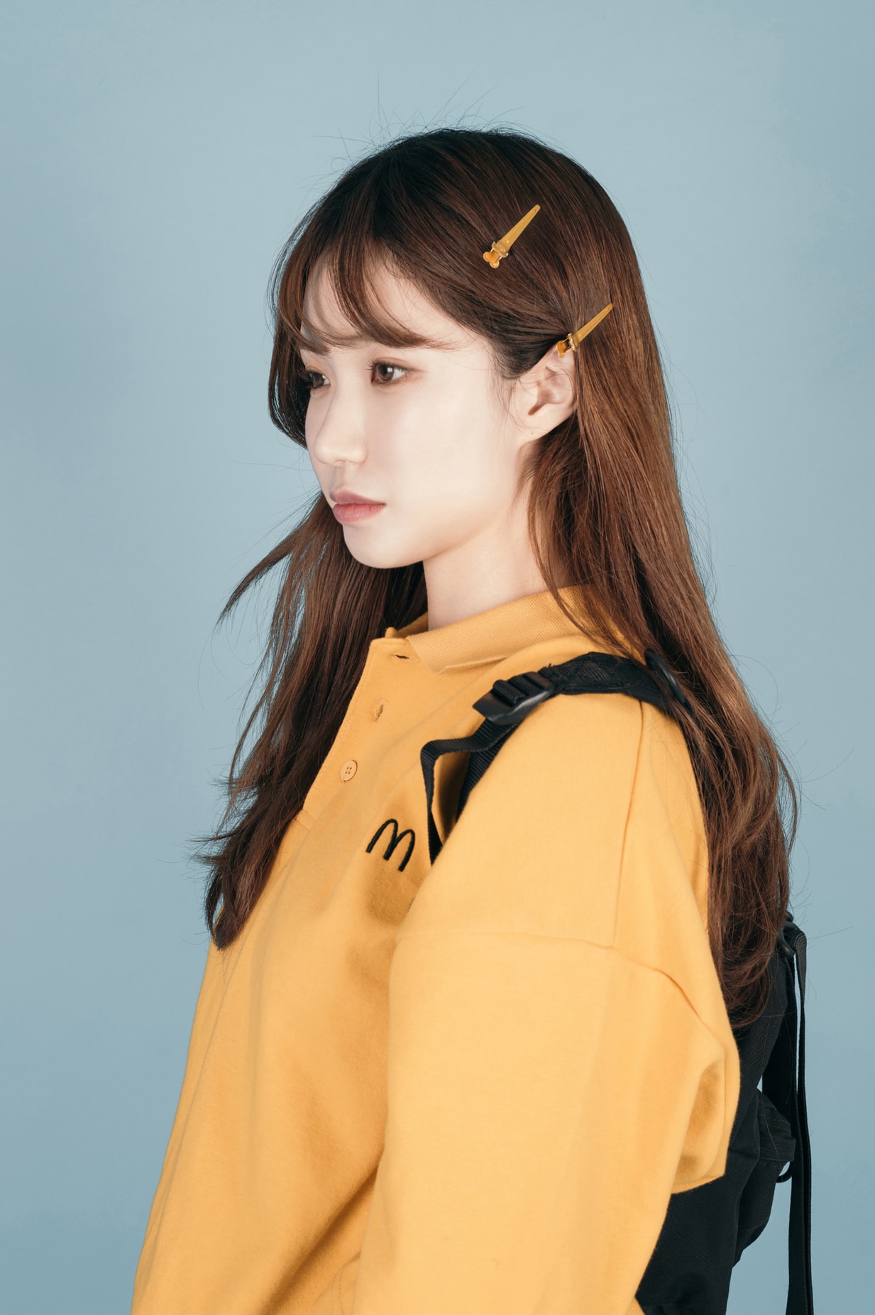 俏皮的黄衣女性摄影