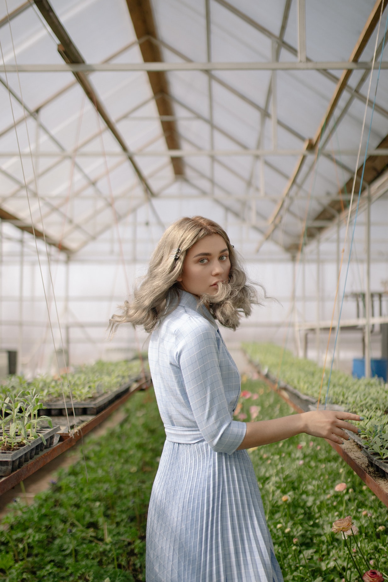 花圃内的鲜花女性