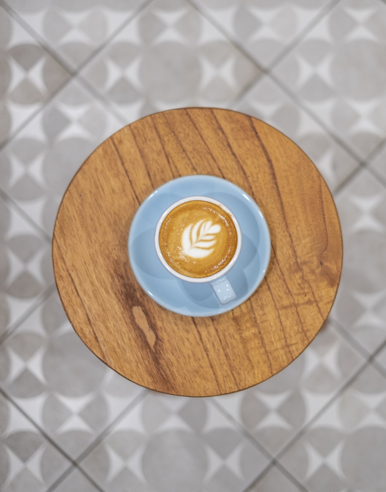 木制托盘上的花朵卡布奇诺