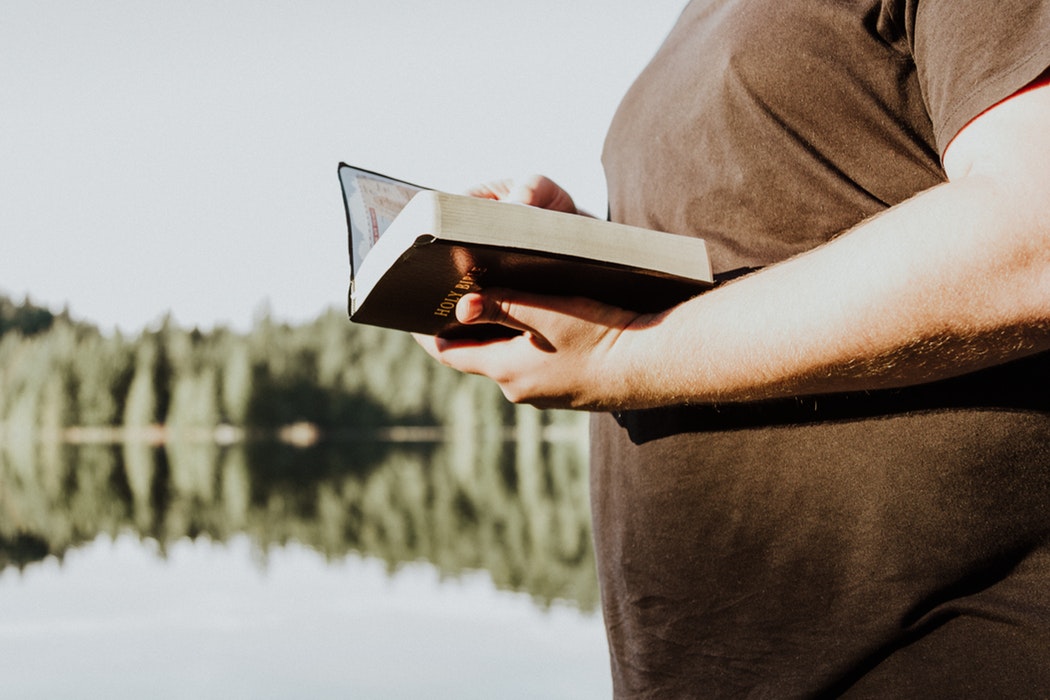 河边女性人物手持圣经