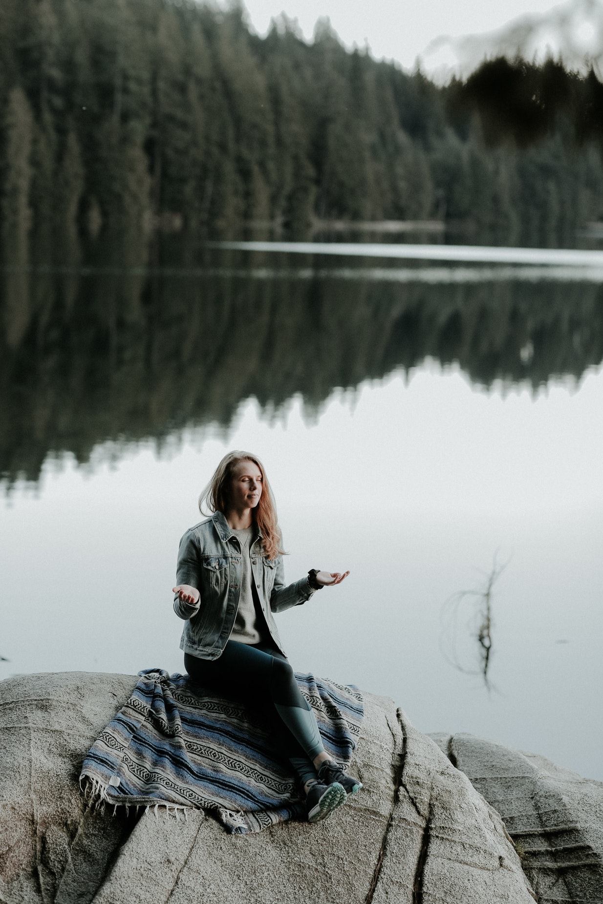 安静在溪水旁的女性人物