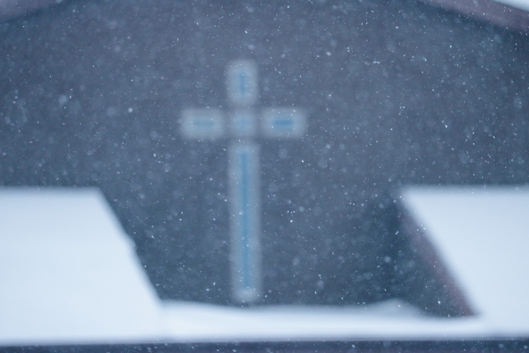 户外雪地雪景中朦胧十字架