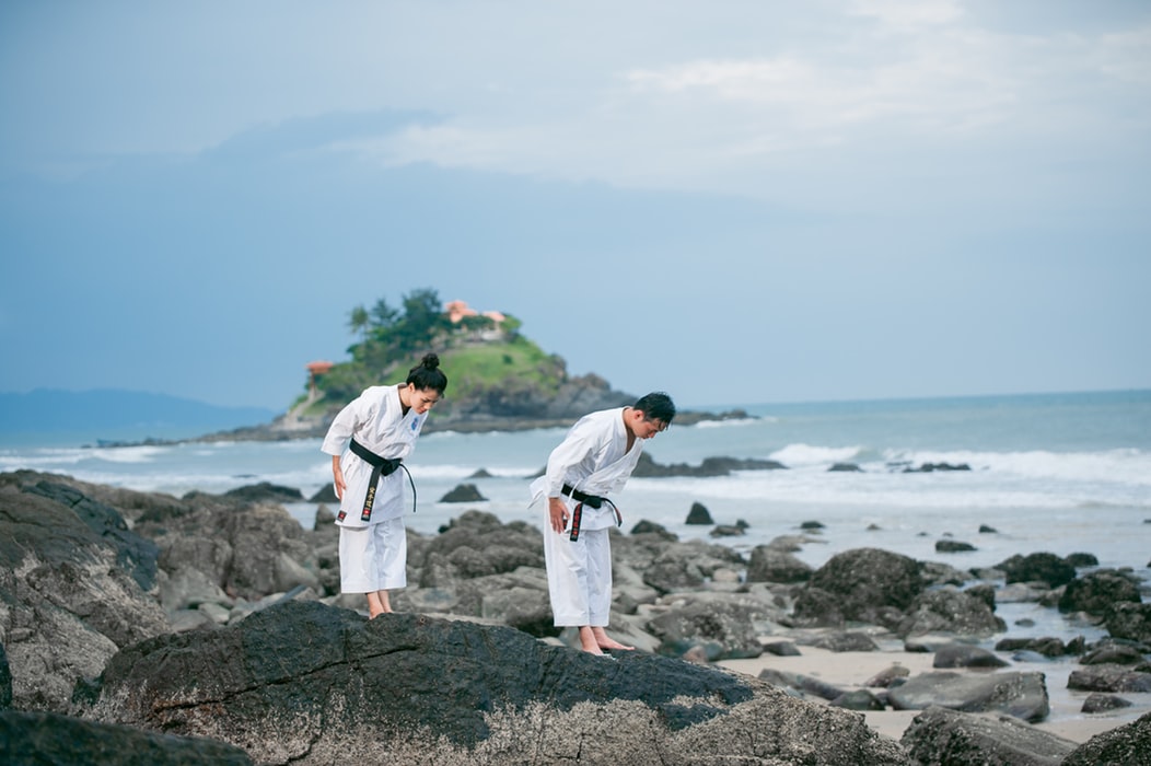 户外海边空手道组合