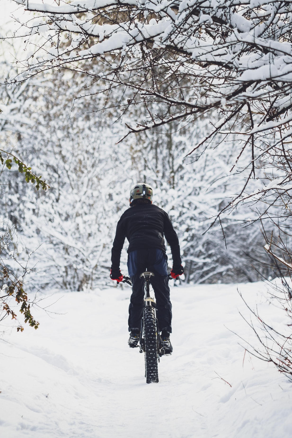 白色世界中俄罗斯自行车骑手