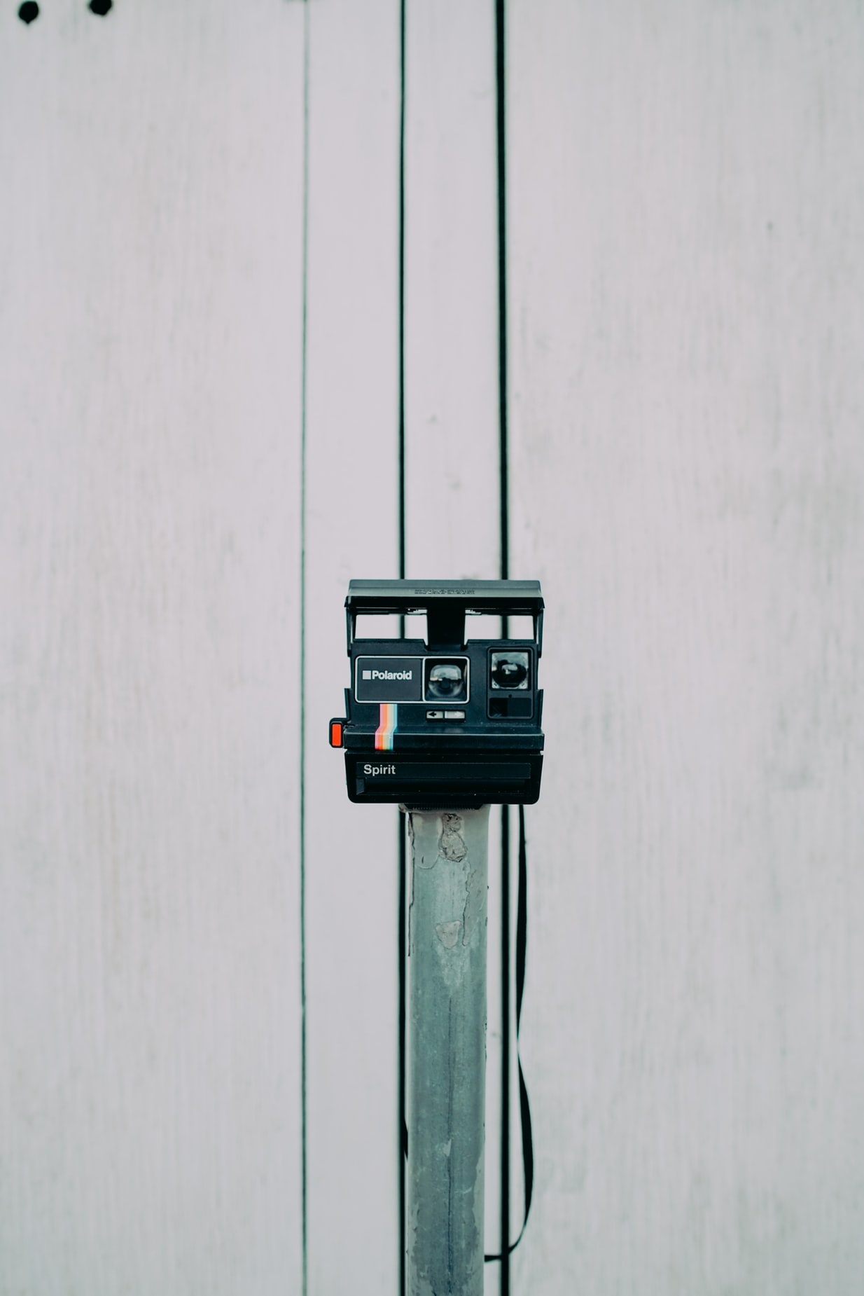 电线杆上的黑色相机展示