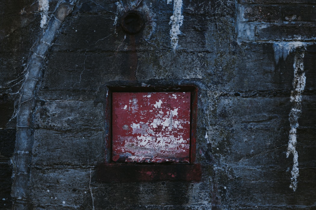 水泥墙面上的裸露红色石砖