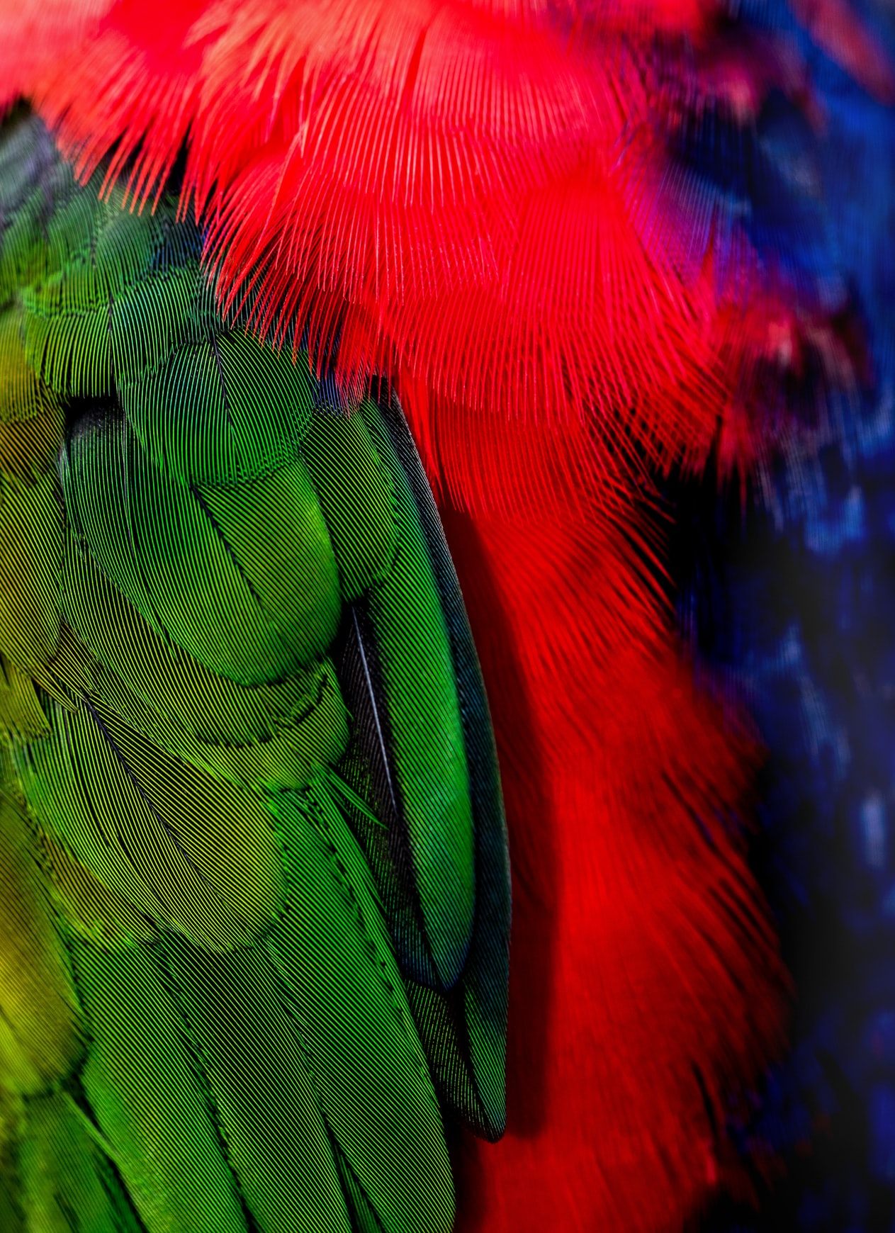 红色羽毛图案覆盖下的绿色植物