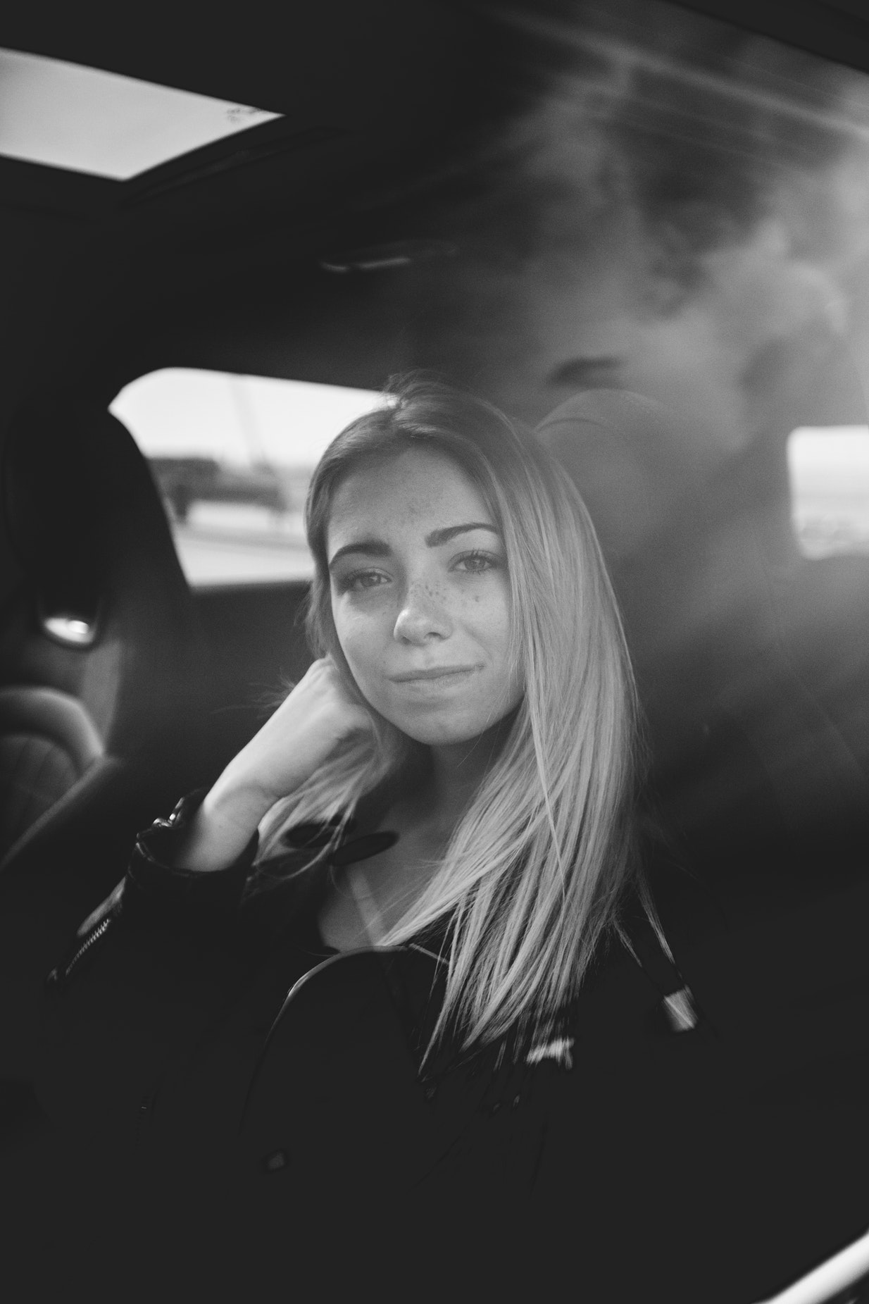 汽车烟雾下的女性人物
