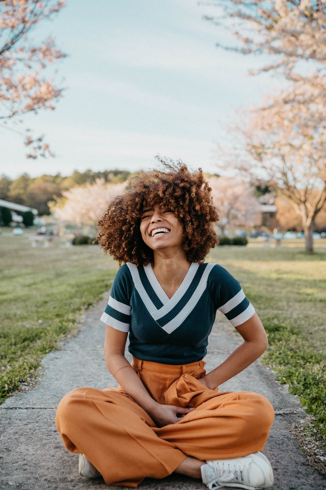 户外卷发女性人物展示