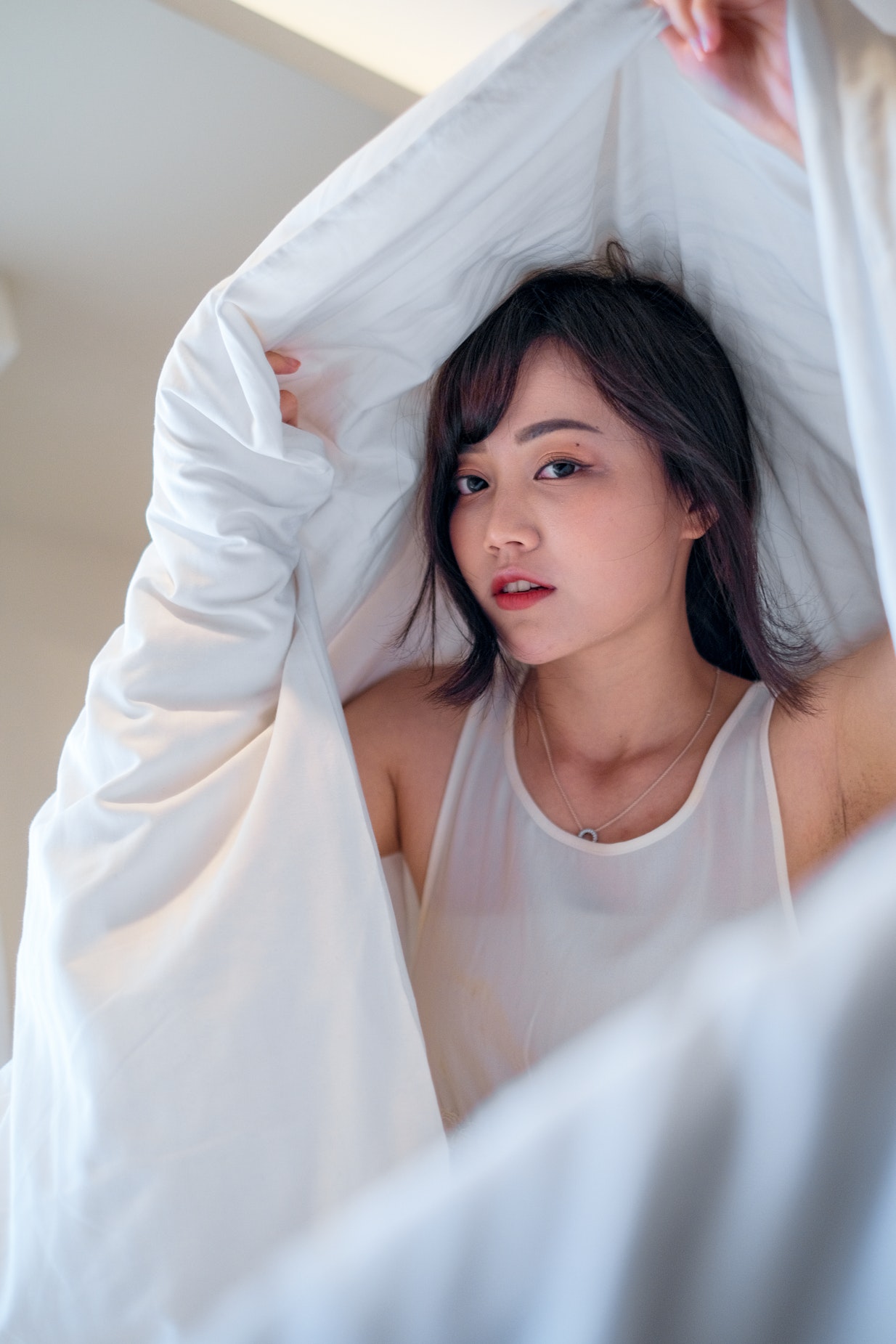 白色被单里的女性人物
