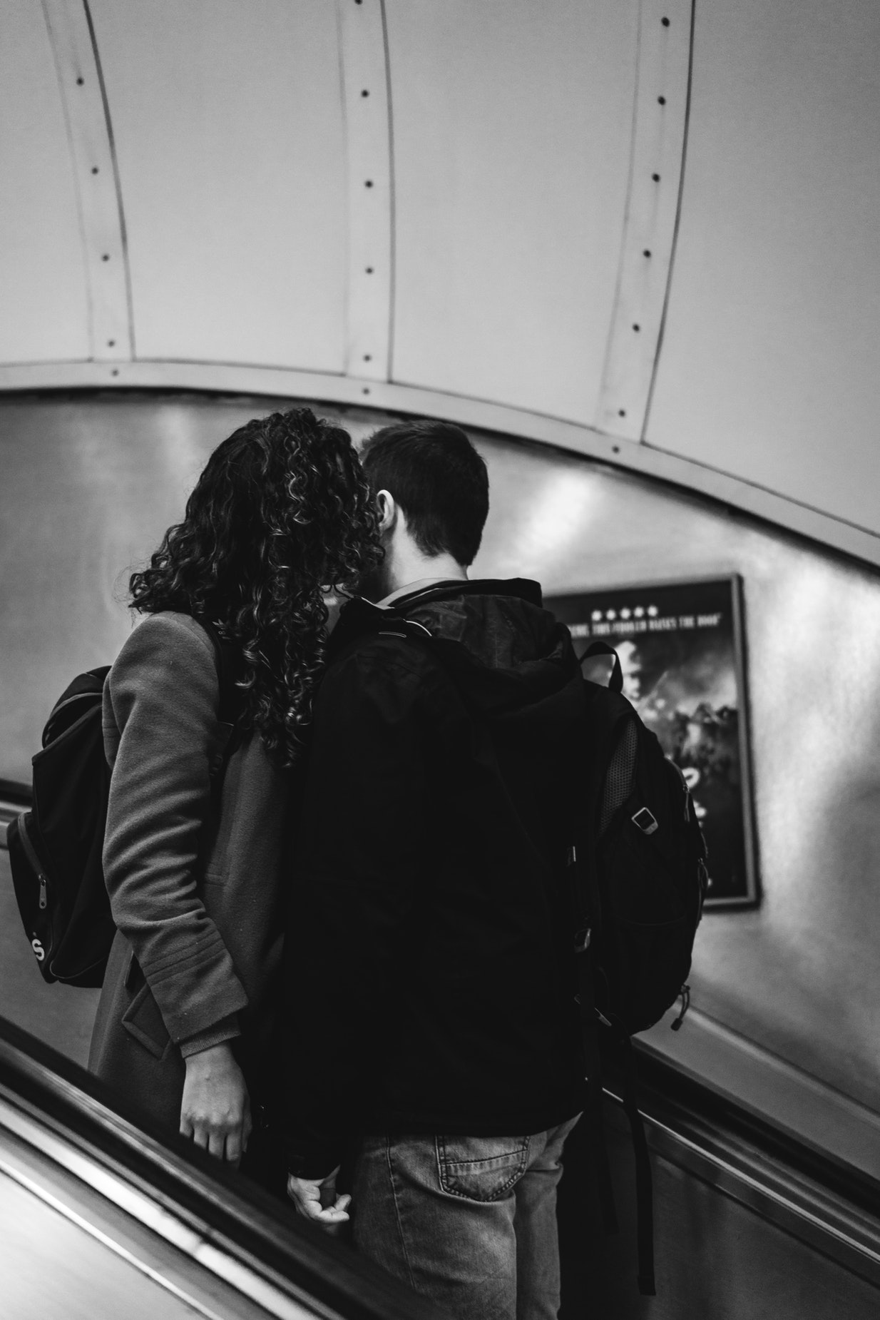 电梯上相互依靠的情侣