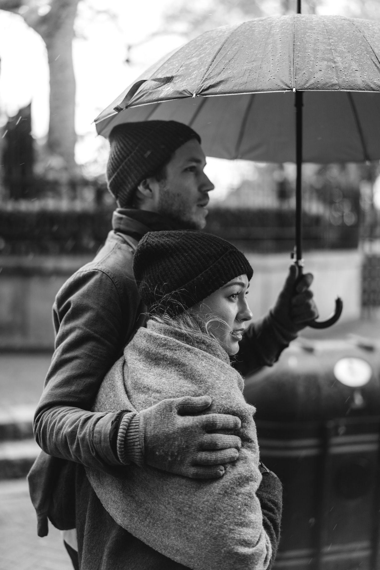 黑白阴影效果伞下情侣