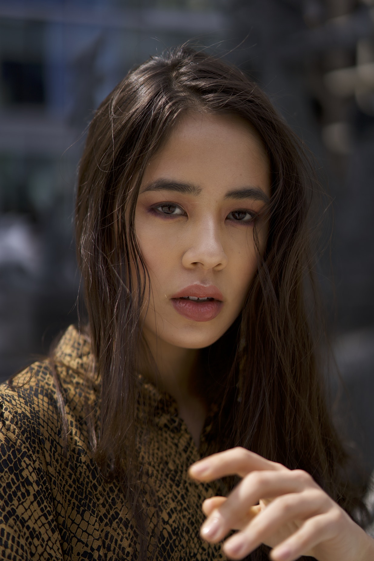 紫发女性珠光宝石展示