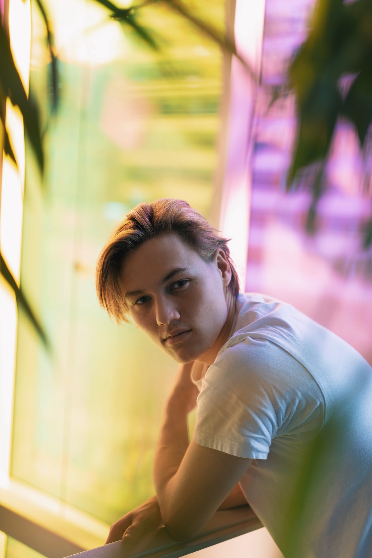 秋千上休息的男性人物旅行照片