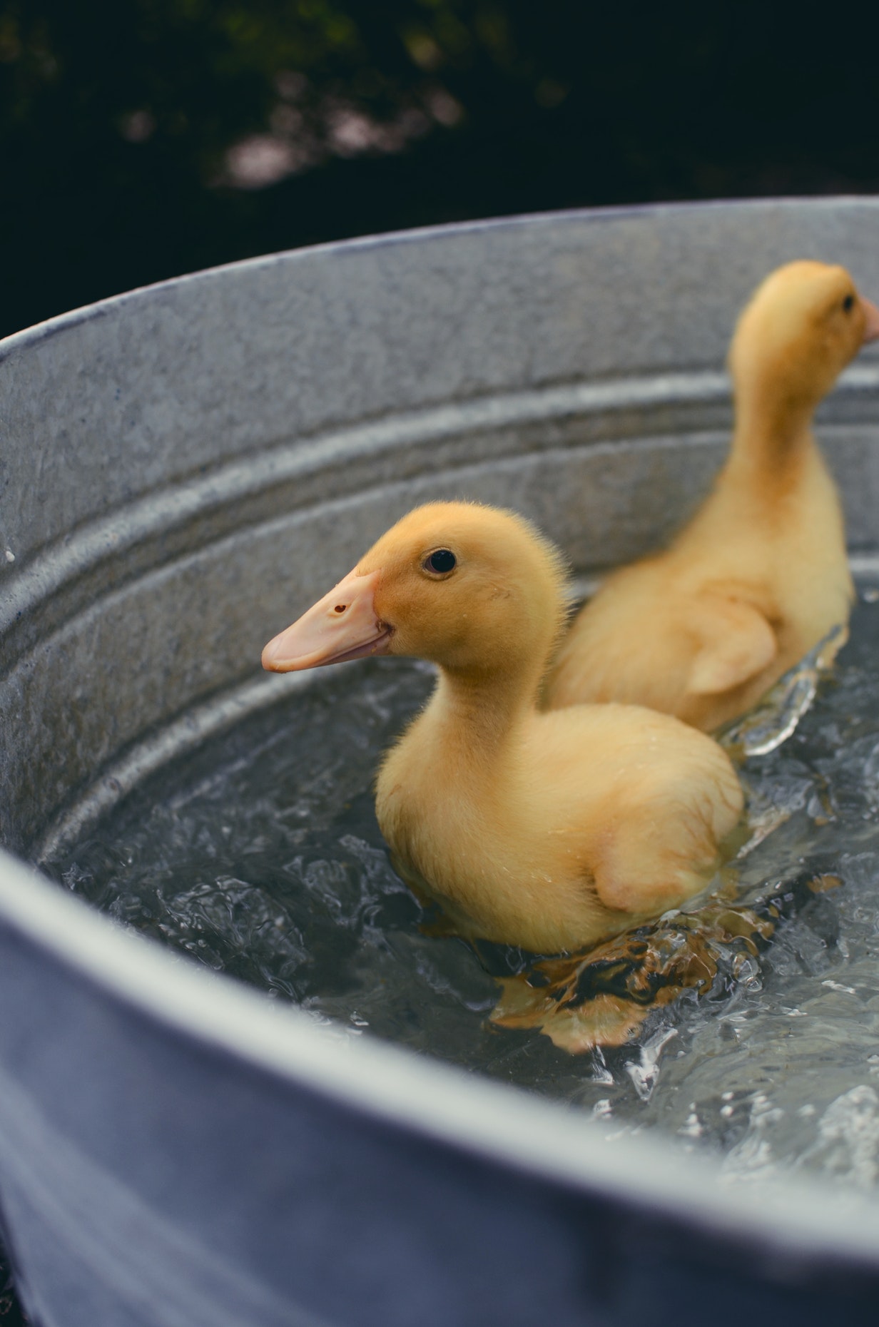 铁桶中戏水的小黄鸭