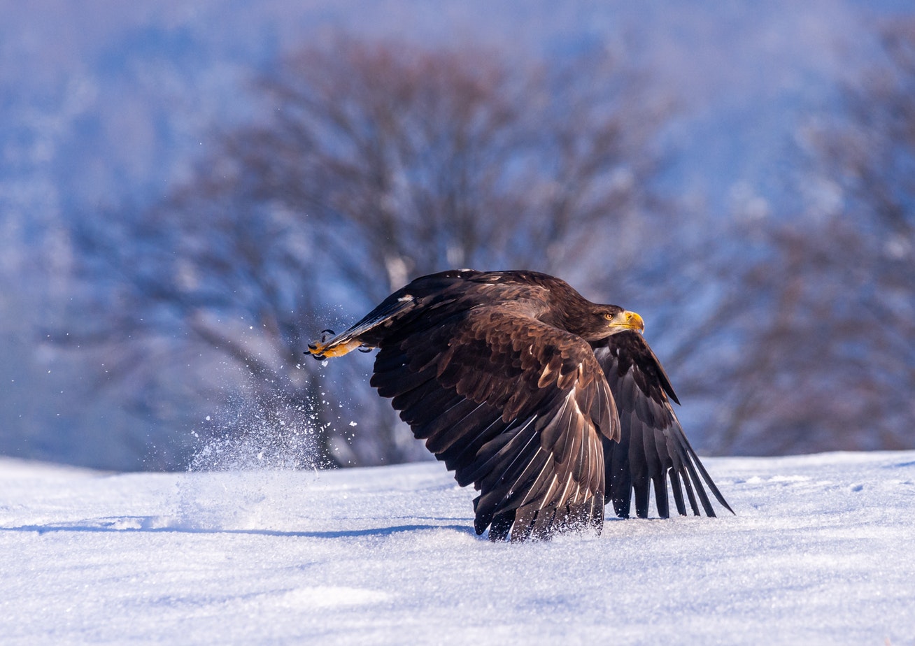 户外低空飞行捕食的老鹰