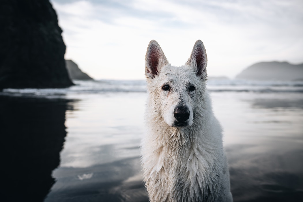 自然湖边哺乳动物白毛狗