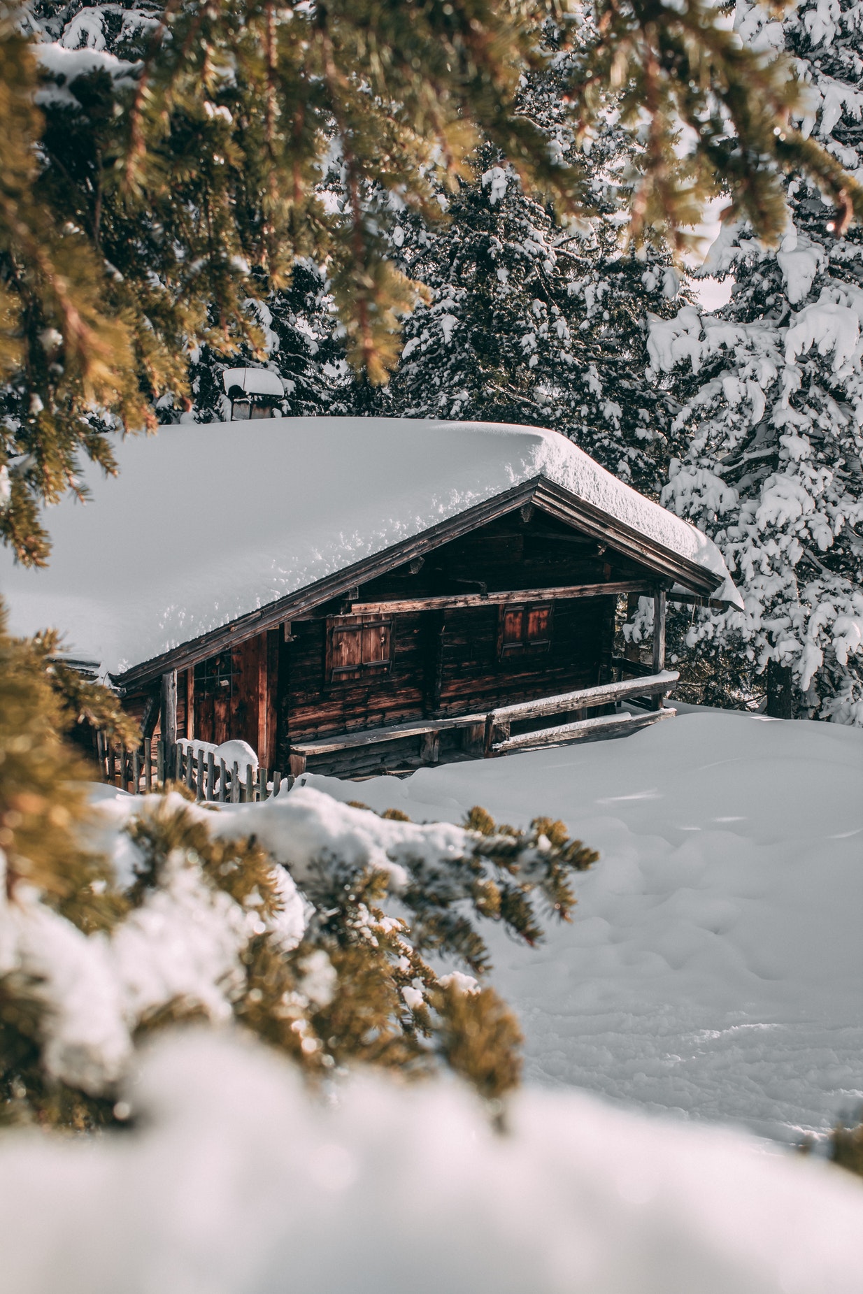 坐落白色雪景中的房屋