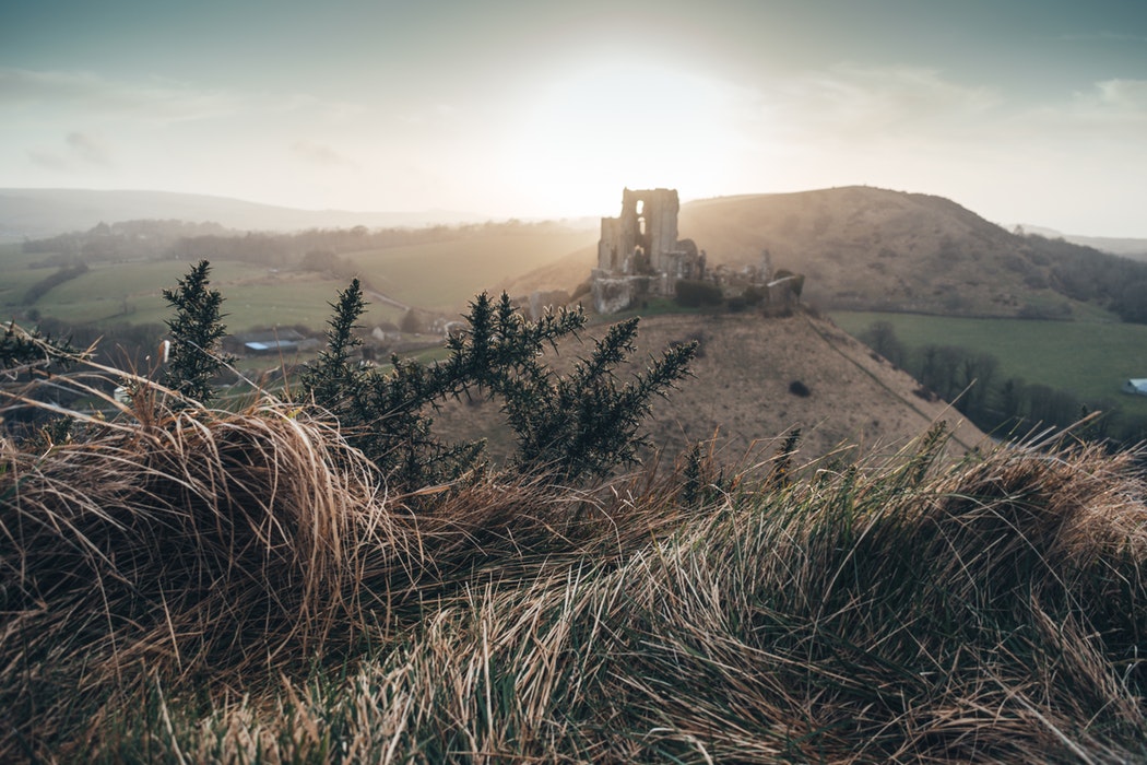 阳光照耀下的荒凉枯草