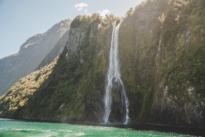 碧绿湖面上的瀑布景观