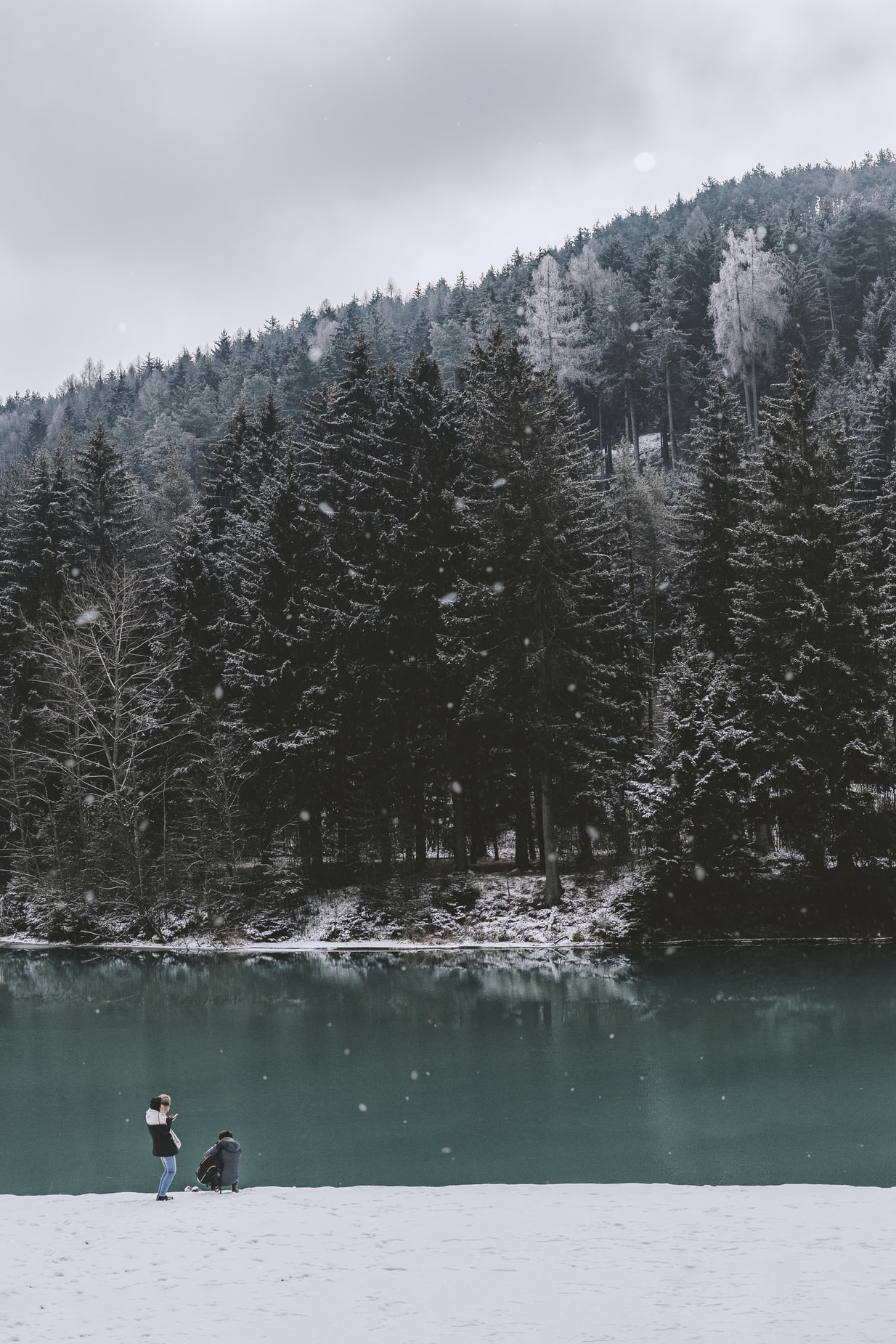 雪景景观前的户外旅行者