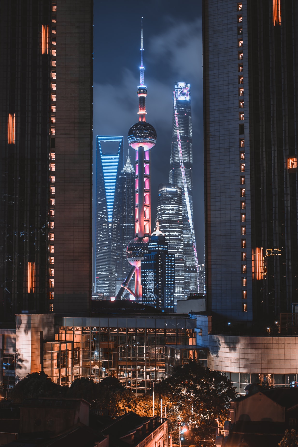 现代街头气息中的高层建筑